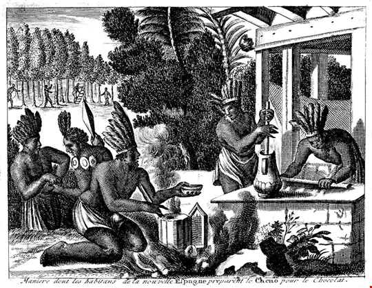 Le cacaoyer pousse à l’état sauvage depuis 4000 ans avant JC en Amérique du Sud, dans la région tropicale. Mais ce n’est que vers 1500 avant Jésus-Christ que les Olmèques, un peuple précolombien de la Mésoamérique le dégustent pour la première fois en boisson. Les Mayas introduisent l'arbre au Yucatan, au Mexique, au cours de leur migration en 1100 avant JC. Les fèves de cacao sont alors d'abord fermentées et séchées avant de pouvoir être utilisées. Elles sont utilisées comme monnaie d'échange, ou bien consommées comme produit alimentaire en étant séchées puis broyées. C'est le début de la démocratisation du cacao comme boisson.