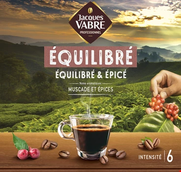 Jacques Vabre Equilibré est un café d'assemblage à l'équilibre parfait d'arômes et de saveurs et une rondeur en bouche agréable. Il est idéal en espresso.