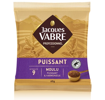 Jacques Vabre Puissant Moulu (Galene) est consensuel aux arômes d'épices et de noisettes grillées. Un assemblage Arabica/Robusta à l'acidité faible et dont la pointe d'amertume lui confère une force et une longueur en bouche modérée.